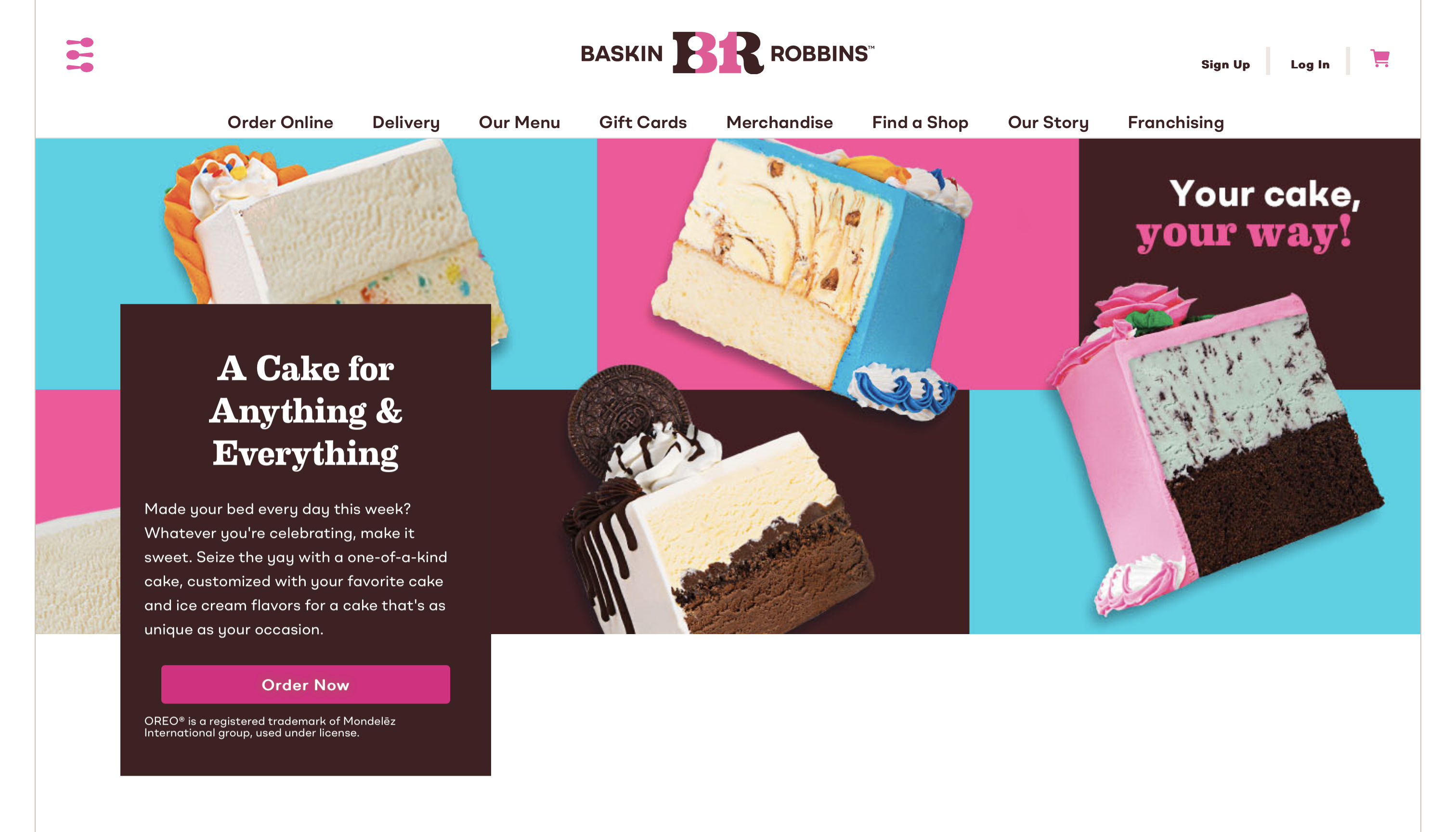 The goal was to create an intuitive, enjoyable online experience that mirrors the delight of visiting a Baskin Robbins store.
